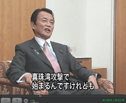 「第十回太郎ちゃんねる」における麻生内閣総理大臣の発言は、十年後の日本の姿を想像し難いということを、先の大戦前後の日米関係を引き合いに出して述べたものであり、先の大戦に関する政府としての認識は、平成七年八月十五日及び平成十七年八月十五日の内閣総理大臣談話等において示されてきているとおりである。