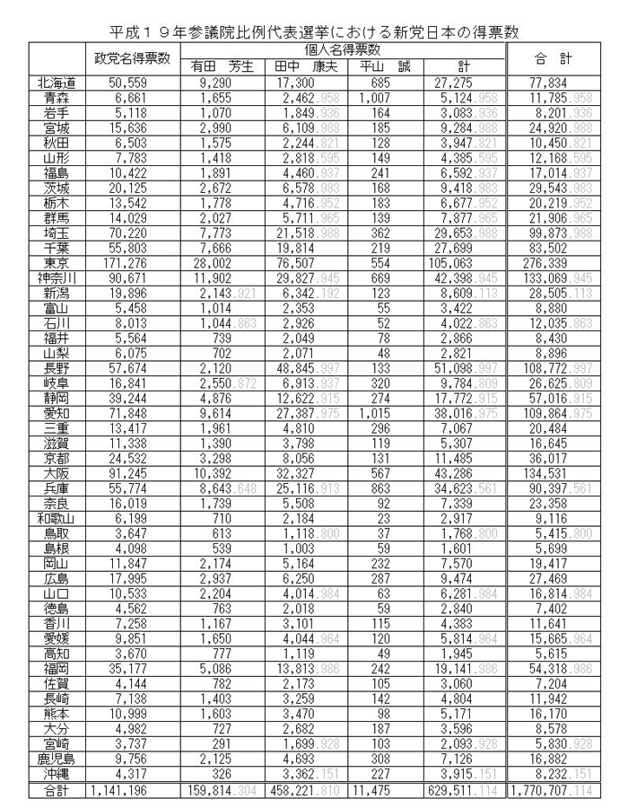 「信じられる日本へ。」と向けて、第21回参議院通常選挙の比例代表に3名の候補者を擁立した新党日本は、177万0697票の得票を頂戴し、1議席を獲得しました。有り難う御座います。