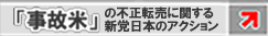 こちら↓をクリックすると、関連映像がご覧になれます。 田中チャンネル 2008/09/10(水)「事故米」一緒に考えよう、変えていこう! 2008/09/10(水)田中康夫が東京地検に告発!事故米転売問題 2008/09/09(火)事故米流通は農水省が起こした「事件」だ! こちら↓も是非お聴き下さい。 新党日本WEBラジオ 農水大臣・三笠フーズ社長を告発した理由(わけ) こちら↓をクリックすると、関連記事がご覧になれます。 共同通信 時事通信 Yahooニュース/事故米転売問題 新党日本の田中代表が告発状提出 汚染米問題で 米粉加工販売会社の三笠フーズ(大阪市)がカビ毒などに汚染された事故米を食用に不正転売した問題で、新党日本の田中康夫代表は10日、同社の冬木三男社長を食品衛生法違反容疑で、太田誠一農相を同法違反のほう助容疑で東京地検に告発状を提出した、と発表した。 告発状によると、冬木社長は有害な物質が含まれた食品を販売してはならない食品衛生法の条項に違反していると指摘。太田農相については、農林水産省の監視態勢を構築する職責があるのに怠り、三笠フーズの違反行為を助長したとしている。 田中氏はこの日の記者会見で、太田氏について「傍観者的発言に終始している」と批判。農水省が問題発生後の早い段階で事故米の流通先を公表したことに関しては「経済産業省や他省庁、地方自治体を含め、被害者である焼酎メーカーなどへの制度融資などの手だてを同時並行で行った上で公表すべきだが、そうしていない」と述べた。(2008/09/10共同通信) 汚染米転売で告発状提出=会社社長と農水相に対し−新党日本代表 新党日本の田中康夫代表(参院議員)は10日、工業用の事故米(汚染米)を食用に不正転売していた問題で、米粉加工会社「三笠フーズ」(大阪市北区)の冬木三男社長と、太田誠一農水相に対する告発状を東京地検に提出した。同地検は正式受理をしていない。 冬木社長は食品衛生法(有害物質販売)違反容疑で、太田農水相は農水省が転売を見抜けず不正を助長したとして刑法(ほう助罪)違反容疑での告発になっている。(2008/09/10時事通信)