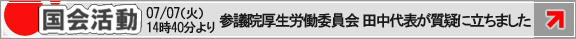 07/07(火) 14時40分より約20分間、参議院厚生労働委員会で田中康夫代表が質疑に立ちました。